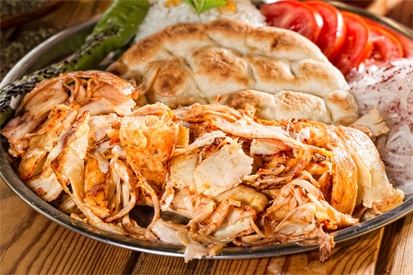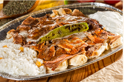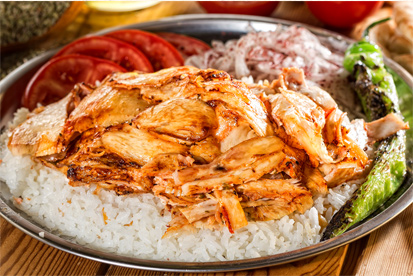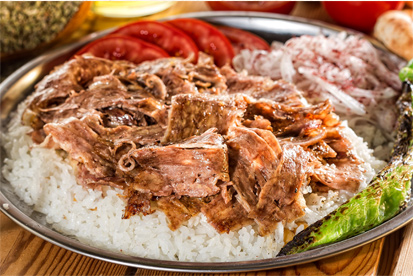 Kıymasız Amasya süt danası dönerimizi bize özel nohutlu pilavımızın üzerinde servis ediyoruz